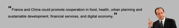 During the first day of Hollande's China visit, Beijing signed an $8 billion agreement to purchase 60 Airbus planes and renewed nuclear power cooperation with Paris. Hollande hocked French food at a press conference in Beijing on April 25, 2013 and expressed his hope to sell more French hams and sausages in China.