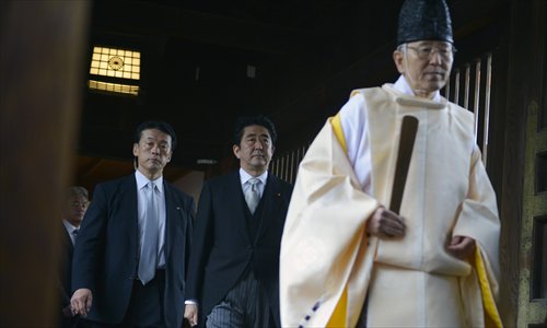 Japanese Prime Minister Abe (center) visits the Yasukuni Shrine on Thursday. Photo: CFP