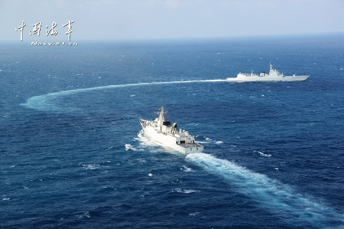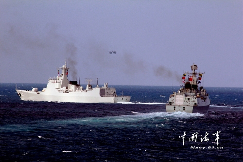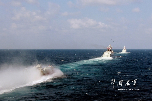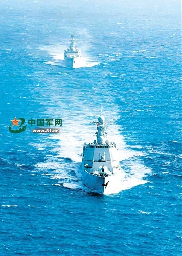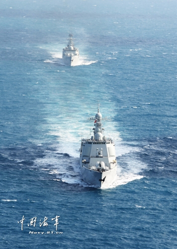 A Chinese navy fleet which is composed of three warships, a hovercraft and three helicopters start force-on-force engagements in the Indian Ocean and the Pacific Ocean on Jan, 20. (Photo source: navy.81.cn)