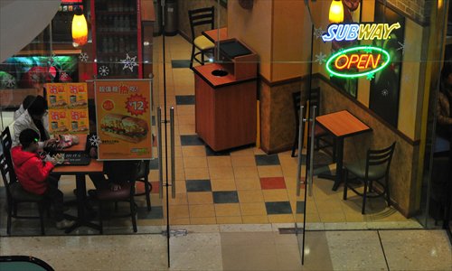 People eat inside a Subway store in Shenyang, Northeast China's Liaoning Province on Monday. Photo: CFP