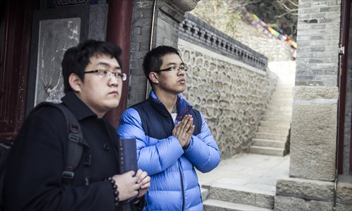 Some urbanites' quest for spiritual enlightenment leads them to temples where they are introduced to Zen Buddhist meditation. Photo: Li Hao/GT