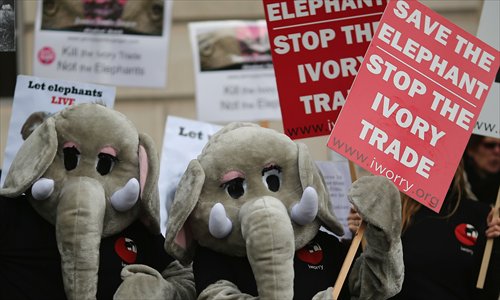 Campaigners seeking to bring an end to the illegal trade in wildlife gather outside London's Lancaster House where the Illegal Wildlife Trade Conference opened on February 13, 2014. Photo: CFP