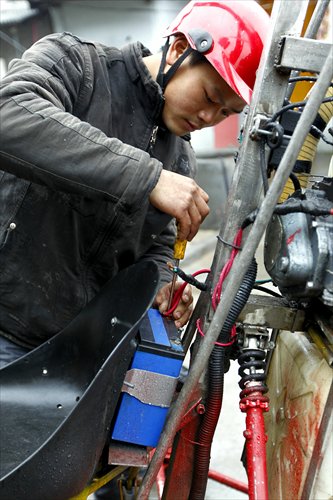 A problem gets fixed on the spot. Photo: Yang Hui/GT