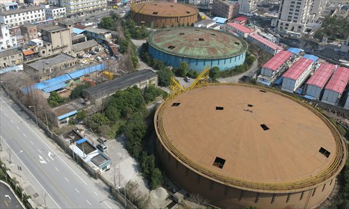Abandoned gas holders on Jinshajiang Road in Putuo district Photo: Du Qiongfang/GT