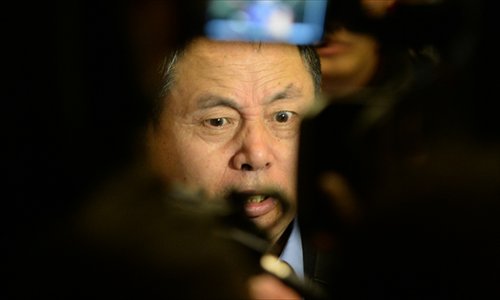 Wen Wancheng, who is the spokesman for the Chinese relatives of passengers on missing Malaysia Airlines flight MH370, comments to the media at a hotel in Beijing on Thursday. Wen, the father of a passenger on board the plane, clung to hope despite Australia's announcement satellites have spotted possible aircraft debris. Photo: AFP