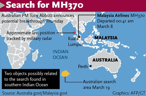 Almost two weeks into the disappearance of MH370, Australia on Thursday said two objects possibly related to the missing plane were sighted around 2,500 kilometers southwest of Perth.
