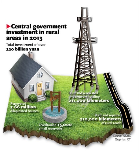 The central budget allocated over 220 billion yuan in 2013 for improvement of rural areas and agricultural development, accounting for 50.6 percent of the total, he said.