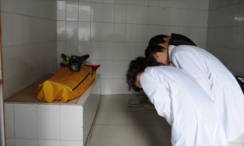 Doctors bow to a deceased male organ donor before an operation to extract his corneas in Rizhao, Shandong Province. Photo: CFP