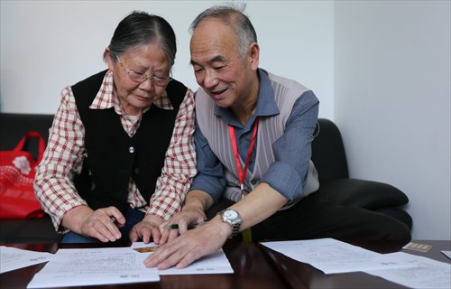 An elderly couple fill out application forms to register as organ donors in Kunming, Yunnan Province. Photo: CFP