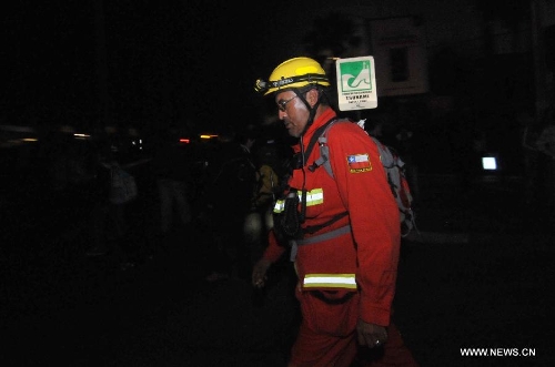 A rescue worker is seen after an earthquake in Iquique, Chile, on April 3, 2014. A 7.8-magnitude earthquake jolted sea off north coast of Chile at 10:43 a.m. Thursday (Beijing Time), according to the China Earthquake Networks Center. (Xinhua/AGENCIA UNO)