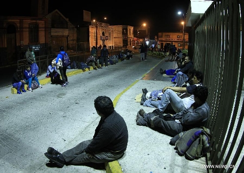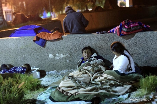People react after an earthquake in Arica, Chile, on April 3, 2014. A 7.8-magnitude earthquake jolted sea off north coast of Chile at 10:43 a.m. Thursday (Beijing Time), according to the China Earthquake Networks Center. (Xinhua/AGENCIA UNO)