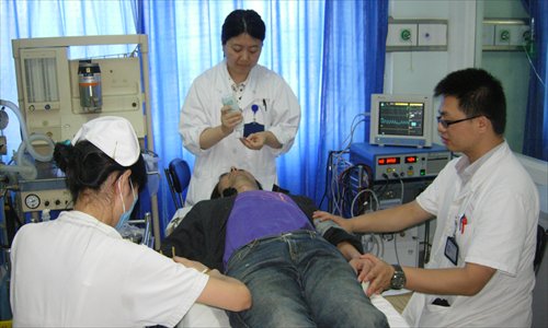 A patient undergoes modified electro-convulsive therapy at the Xuhui Mental Health Center. Photo: Wang Zhefeng/GT