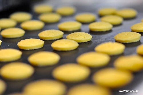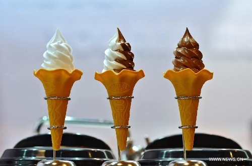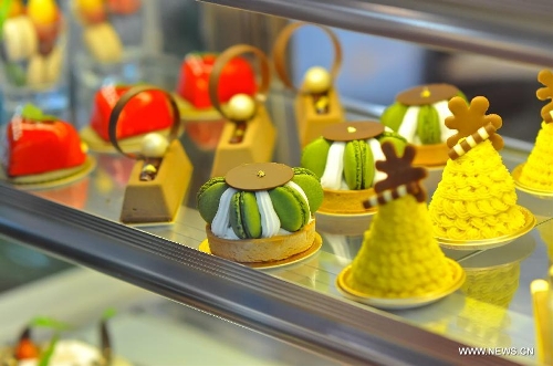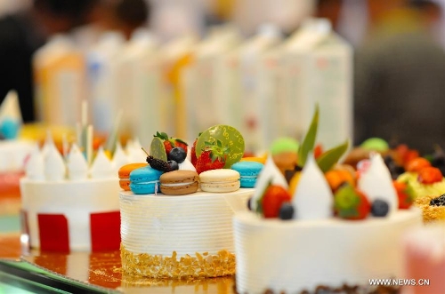 Photo taken on April 8, 2014 shows the desserts for display during 2014 China Beijing International Bakery, Icecream and Food Processing and Packaging Exhibition in Beijing, capital of China. The exhibition, which kicked off on April 8, will last for three days. (Xinhua/Ma Zhiyu)