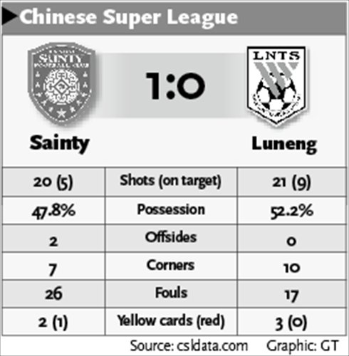 But rather than going in Luneng's favor, Sainty fired back with a string of chances, only to be denied by Shangdong keeper Wang Dalei.