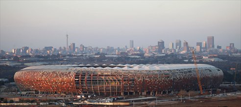The FNB Stadium, a South African icon during the 2010 FIFA World Cup, is seen under construction on the outskirts of Soweto in 2009. Photo: IC