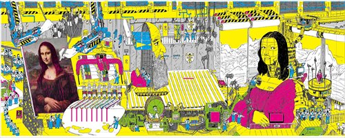 Participating artists present diverse interpretations of the world-renowned painting, such as a mechanical-styled illustration of Mona Lisa created by Croter Hung from Taiwan and a series of photographs of people who bear a similar smile to the subject of the portrait presented by Wang Gangfeng in Shanghai.