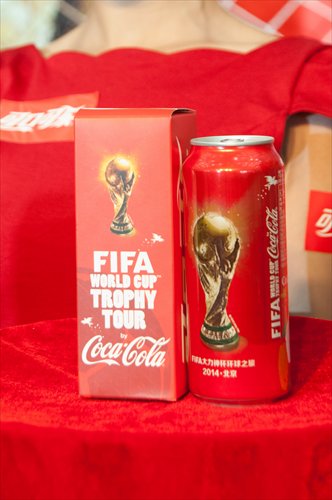 Coca-Cola's Brazil World Cup-themed cans shown in Beijing Photo: CFP