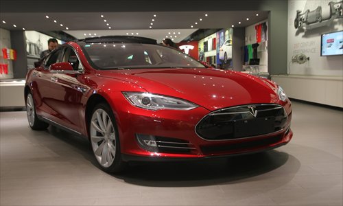 A Tesla Model S displayed at the company's store in Beijing Photo: IC