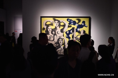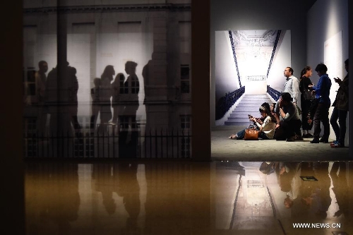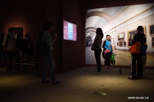 People visit the "Ten Masterpieces of French Painting" exhibition at the National Museum of China in Beijing, capital of China, April 26, 2014. To meet visitors' high demand for the exhibition "Ten Masterpieces of French Painting", the National Museum of China prolonged its opening hours to 20:00 on four Saturdays. (Xinhua/Jin Liangkuai)