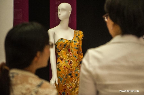 Visitors view an exhibit during the "Reflection of Time - Art of Fashion in China 1993-2012" in Shenzhen, south China's Guangdong Province, April 26, 2014. The exhibition, displaying more than 100 creative works of fashion created by 70 Chinese designers in the past 20 years, is dedicated to showcasing the overall development of Chinese fashion design and the creative concepts. (Xinhua/Mao Siqian)