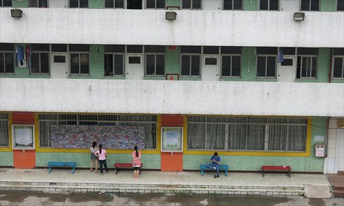 Workers on strike in a Yue Yuen factory idle away the day in their dormitory compound in Gaobu township, Dongguan, Guangdong Province, on April 23. Photo: Li Qian/GT