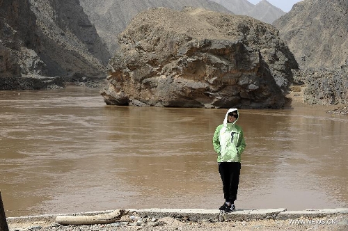 A tourist poses for photos beside the Yellow River at the Heishan Gorge area in Zhongwei City, northwest China's Ningxia Hui Autonomous Region, Apirl 29, 2014. (Xinhua/Li Ran)