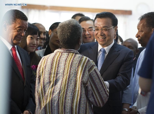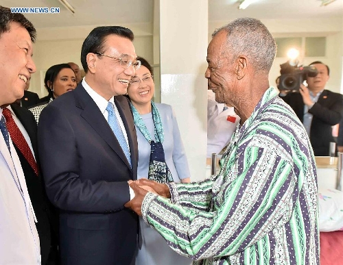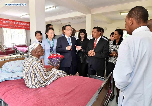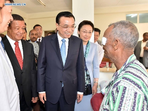 Chinese Premier Li Keqiang (2nd L) visits a patient who has received a free cataract surgical operation of the program "Bright Journey" provided by China at Alert Hospital in Addis Ababa, Ethiopia, May 6, 2014. (Xinhua/Li Tao)