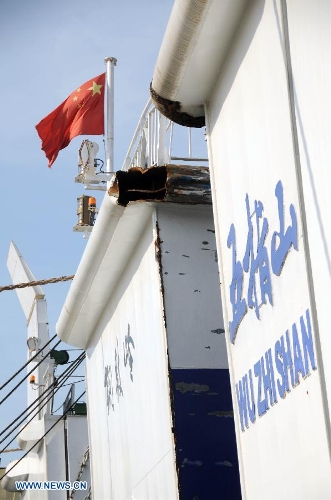 Passenger ship "Wuzhishan" leaves for Vietnam from Xiuying port in Haikou, capital of south China's Hainan Province, May 18, 2014. China began on Sunday to send five ships to evacuate Chinese nationals caught in a deadly anti-China violence in Vietnam, the Ministry of Transport has said. "Wuzhishan" was the first ship leaving for Vietnam. (Xinhua/Wei Hua)BEIJING, May 18 (Xinhua) -- China is to send five ships to Vietnam on Sunday to evacuate Chinese nationals caught in a deadly anti-China violence, the Ministry of Transport said.The first ship has already set off from a port in Haikou, China's southmost province of Hainan, at 8 a.m. Sunday, said a statement from the ministry.The ship is expected to reach Vietnam after 17 to 18 hours' travel, according to Hainan Maritime Safety Administration.A rescue vessel has been sent to the relevant waters to provide emergency support. Another rescue vessel and a rescue helicopter are on standby, officials with the administration said.Two Chinese nationals were killed in the violence and more than 100 others injured.An iron and steel complex in Ha Tinh Province of Vietnam, invested by Taipei-based Formosa Plastics Group, was badly hit in the violent attacks triggered by disputes in the South China Sea.Sixteen critically injured Chinese nationals were evacuated from Vietnam early Sunday morning aboard a chartered medical flight arranged by Chinese government.More than 3,000 Chinese nationals have been evacuated from Vietnam as of Saturday afternoon, China's Foreign Ministry said early Sunday morning.
