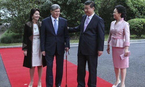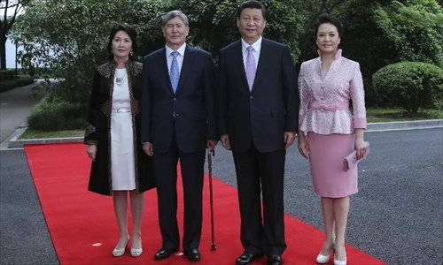 Chinese President Xi Jinping (2nd R) holds a welcoming ceremony for visiting Kyrgyz President Almazbek Atambaev (2nd L) before their talks in Shanghai, east China, May 18, 2014.Photo: Xinhua