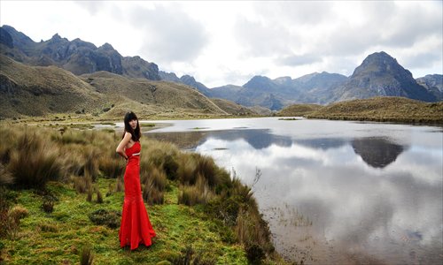 Li's wedding photos coincided with the start of the rainy season in Ecuador in early February. Their first shoot took place in a desolate meadow near the small town of Taday, not far from Azogues where Li's husband works as a project manager for a hydropower station construction site.