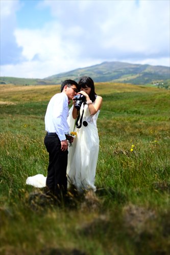China's booming wedding photography industry is renowned for its glamorous, extravagant shoots, even though some photos can appear kitsch with the use of fake backgrounds and garish props. This generic approach has persuaded some newlyweds like Li to seek more creative and personalized shoots by arranging studio-free photos taken during a honeymoon or exotic holiday.