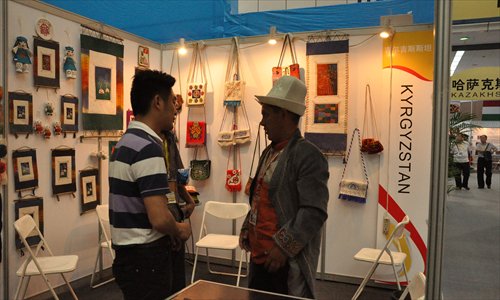 Handicrafts from Kyrgyzstan are exhibited in a booth at the 18th Investment & Trade Forum between East & West China in Xi’an, Shaanxi Province on May 23, 2014. The Forum, held jointly with the Silk Road International Exposition from May 23 to 26, will include 29 separate events to promote international trade, 20 of which will be themed around the Silk Road and economic cooperation between China and other countries. Photo: Liu Sha/GT