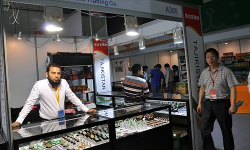 Jewelry from Tajikistan is exhibited at the 18th Investment & Trade Forum between East & West China in Xi’an, Shaanxi Province on May 23, 2014. Photo: Liu Sha/GT
