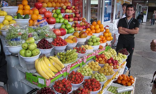 Varieties of imported fruits from Uzbekistan are sold in the Green Bazaar in Almaty, Kazakhstan. Photo: Wang Wenwen/GT