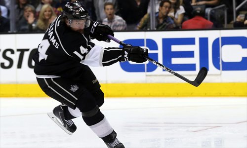 Justin Williams of the Los Angeles Kings scores the game-winning goal against the New York Rangers on Wednesday (US time). Photo: AFP