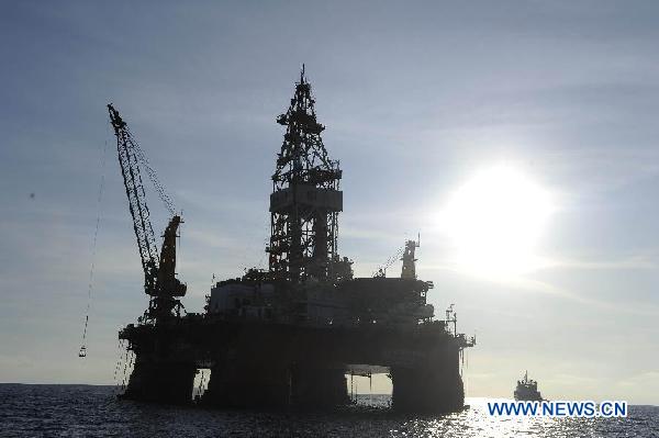 Photo taken on May 9, 2012 shows deep-water drilling rig CNOOC 981 in the South China Sea, south China, May 9, 2012. The sixth-generation semi-submersible CNOOC 981 began drilling in a sea area 320 km southeast of Hong Kong at a water depth of 1,500 meters, according to China National Offshore Oil Corp. (CNOOC), the country's largest offshore oil producer. Photo: Xinhua