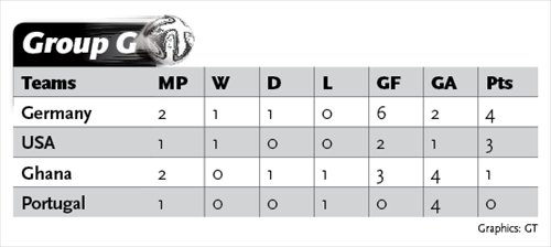 Ghana, beaten by the USA in their first game, have one point heading into their final match with Portugal next week.