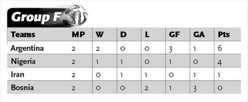 In other matches, a moment of individual brilliance from Argentina captain Lionel Messi steered his team into the last 16 in a victory over Iran, while Bosnia were knocked out after a controversial 1-0 loss to Nigeria.