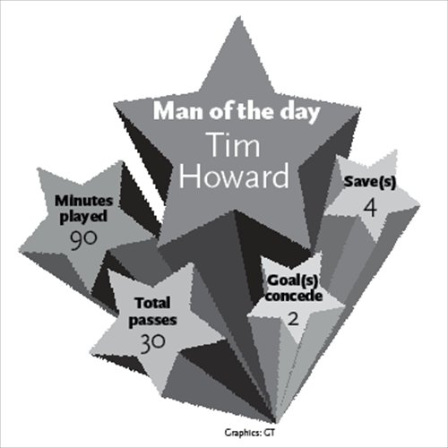 USA goalkeeper Tim Howard makes a save during a Group G match against Portugal at the Amazonia Arena in Manaus during the 2014 FIFA World Cup on Sunday. Photo: AFP