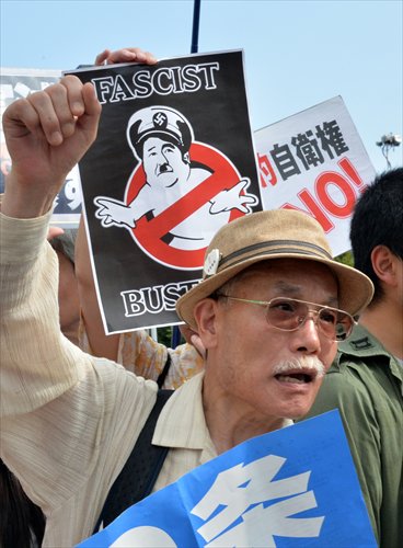 A middle-aged man from Ibaraki, who took a two-hour train ride to join the rally, told the Global Times that the consensus since World War II has been that Japan should rely on its pacifist constitution to protect its citizens instead of on military strength.