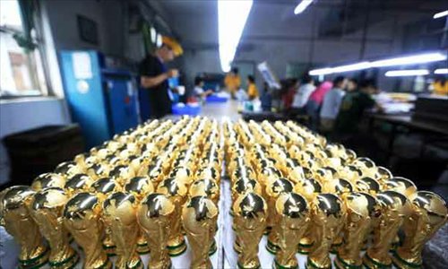 China doesn't have a squad playing in this year's ongoing World Cup but another "Team China" is enjoying a shining moment thanks to soccer's showcase in Brazil. That team is busy making the souvenirs that many World Cup fans crave and it's also scored a goal for China's vastly improved manufacturing sector.