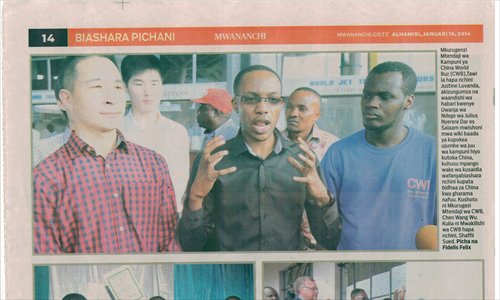 Luvanda (first line, second from left) and Swed (front right) as featured in the Mwananchi, a Swahili newspaper in Dar es Salaam, Tanzania Photo: Courtesy of Wang Fengzhai