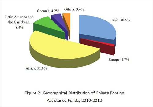 From 2010 to 2012, China provided assistance to 121 countries, including 30 in Asia, 51 in Africa, nine in Oceania, 19 in Latin America and the Caribbean and 12 in Europe. Besides, China also provided assistance to regional organizations such as the African Union (AU).