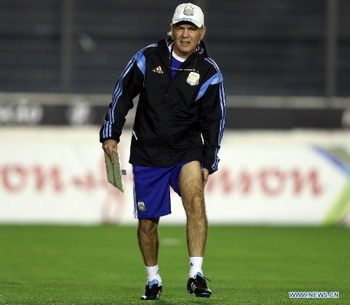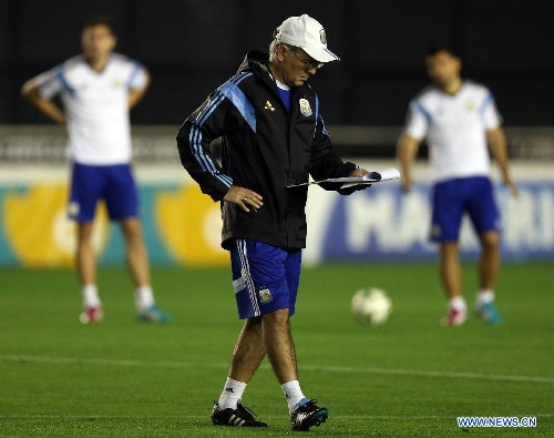 Alejandro Sabella, head coach of Argentina's national soccer team, takes part in a training session in Rio de Janeiro, Brazil, on July 12, 2014. Germany will face Argentina in the final match of the 2014 FIFA World Cup Brazil, on July 13. (Xinhua/TELAM)