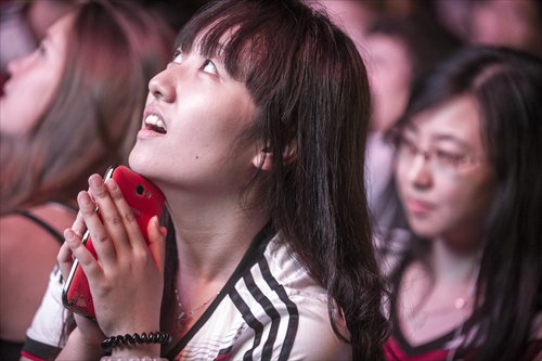 A football fan watches the game with excitement. Photo: Li Hao/ GT