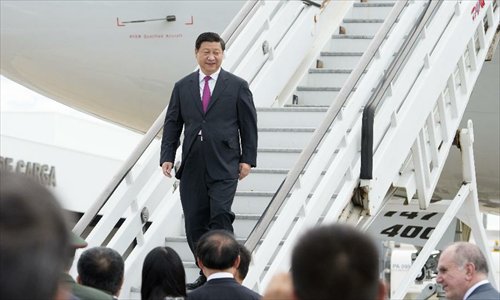Chinese President Xi Jinping arrives in Fortaleza for the sixth summit of the BRICS, which consists of Brazil, Russia, India, China and South Africa, in Brazil, July 14, 2014. Photo: Xinhua