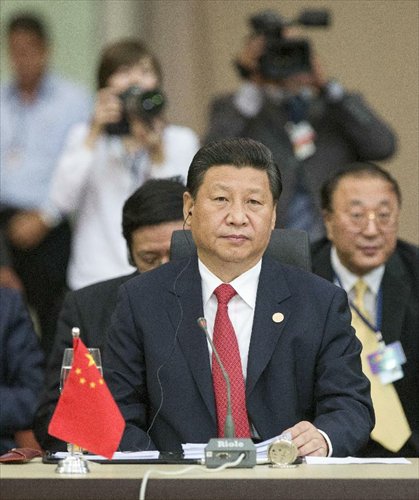 Chinese President Xi Jinping (front) attends the sixth BRICS summit in Fortaleza, Brazil, July 15, 2014. Photo:Xinhua