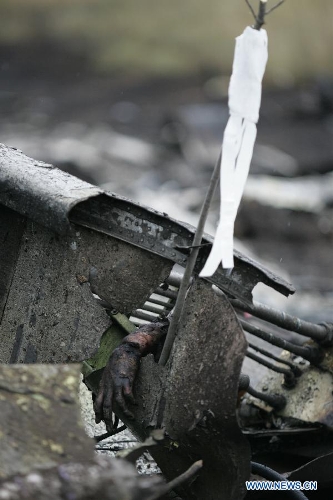 A hand is seen from the debris of MH17 of Malaysian Airlines near the city of Shakhtarsk in Ukraine's Donetsk region, July 18, 2014. Malaysian Transport Minister Liow Tiong Lai said Friday that according to the International Civil Aviation Organization's Annex 13, the Ukrainian government should institute an investigation into the circumstances of the deadly MH17 incident, and be responsible for the conduct of the investigation. (Xinhua/Alexander Ermochenko)