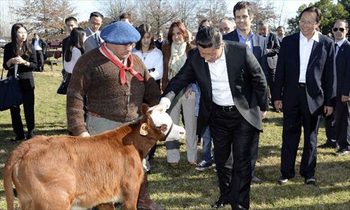 Chinese President Xi Jinping (C) visits the Republic Farm, some 70 km away from Buenos Aires, Argentina, July 19, 2014. Photo: Xinhua