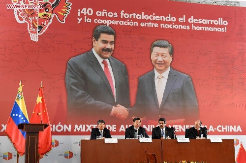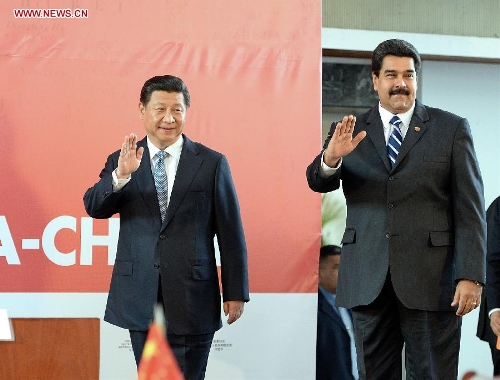 Chinese President Xi Jinping (L) and his Venezuelan counterpart Nicolas Maduro attend the closing ceremony of the 13th meeting of the China-Venezuela High-Level Joint Commission in Caracas, capital of Venezuela, July 21, 2014. (Xinhua/Liu Jiansheng)